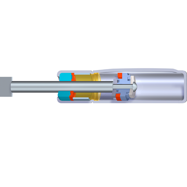 By reducing or increasing the groove cross-section, the piston rodˊs speed can be varied over the entire stroke, allowing it to be customized to the application. The motion can be slowed down smoothly and continuously until it comes to a stop It allows implementing different compression and extension characteristics as well as a damped approach of intermediate positions.