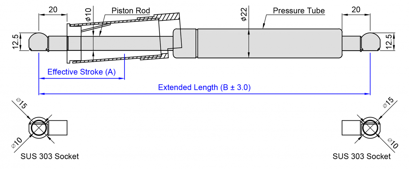 Basically, the principle of actuation is the same as that of a general gas spring. Mainly in the piston rod side append steel tube and spring component.Avoid the failure of the gas spring pressure or the supported mechanism is dangerously caused by other external forces or momentary gusts that cause the cover to close instantly.