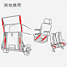 - 車輛工業:汽車引擎蓋及後門行旅箱,巴士坐椅及行旅箱,特殊交通工具之掀門。