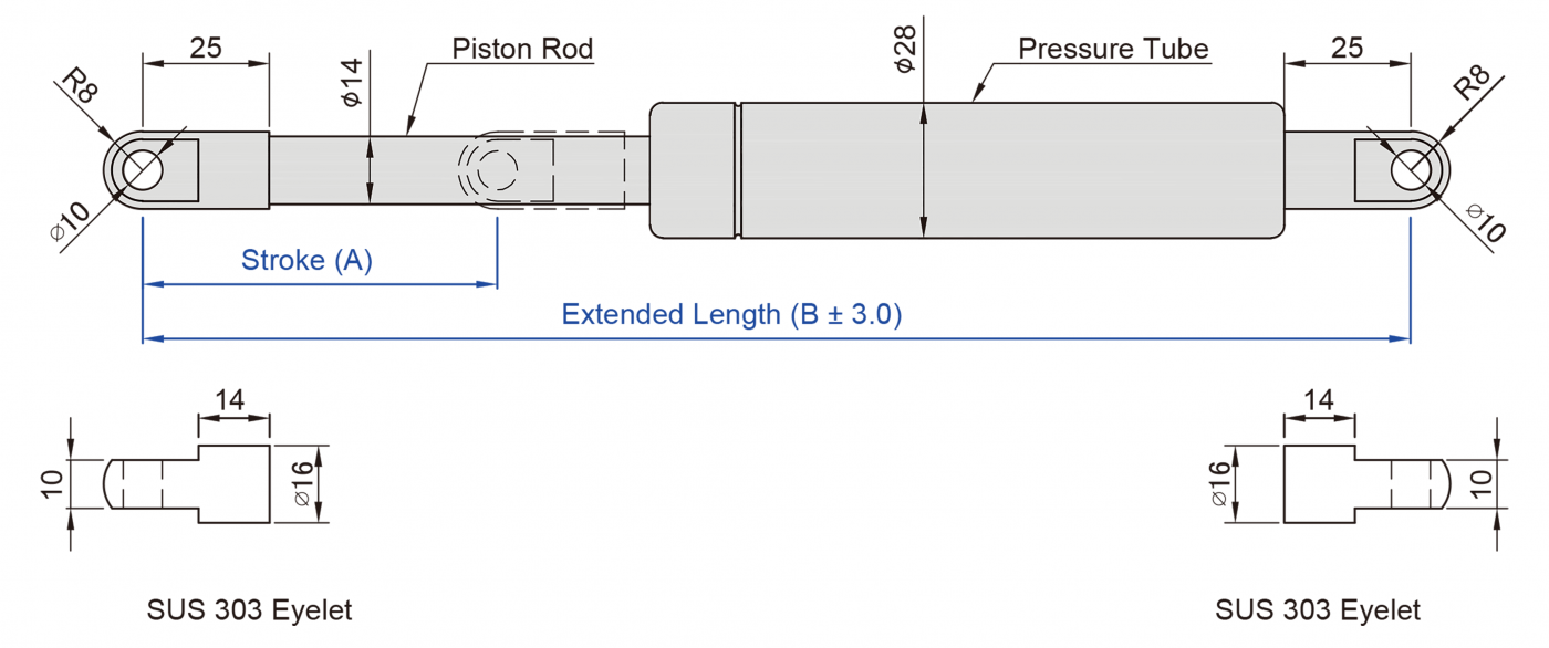 STABILUS自由型不鏽鋼氣壓棒(氮氣缸)材質SUS316L 等級,並通過 美國 ASTM-B117 & ISO 9227 鹽霧測試