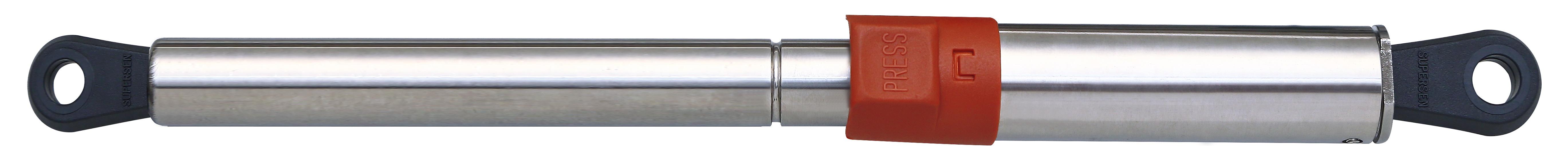 SUPERSEN 自由型-不鏽鋼安全開關-氮氣缸(Stainless Gas Spring Free Type-Safety series) 基本上作動原理與一般自由型氣壓棒 (氮氣缸) 相同,主要是在於軸心端行程外部加裝套管及彈簧,避免氣壓棒壓力失效或所支撐之機構受其它外力或瞬間陣風導致氣壓棒瞬間關閉造成危險;氣壓棒常使用於戸外餐車,咖啡車,推高機引擎蓋,戸外門窗,遊艇,電子設備等。