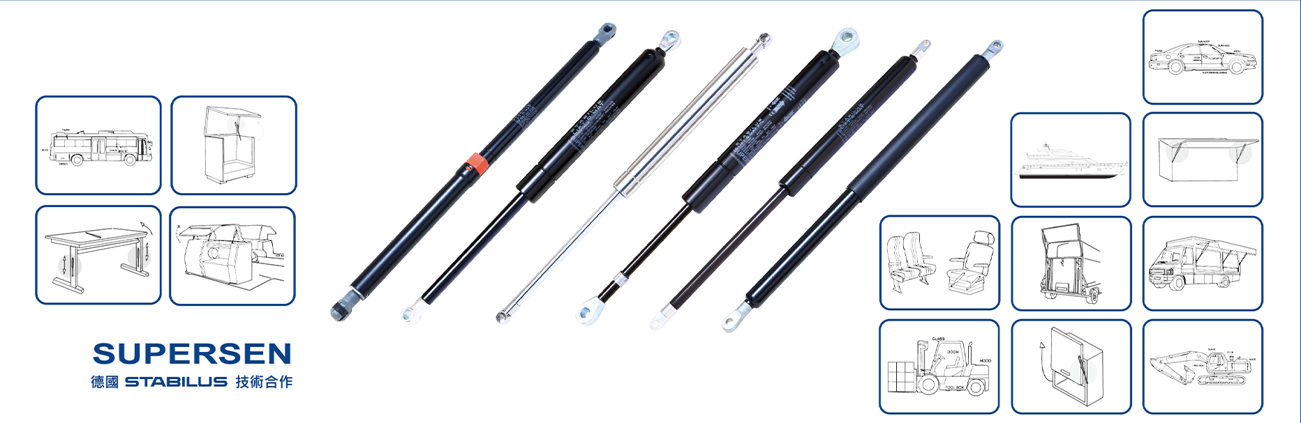 本公司是從事氣壓棒、氮氣缸和氣壓棒相關週邊配件研發及製造,為包括「代理、製造、代工、研究開發」多元發展之企業,為專業的Gas Spring製造商,如果您需要了解氣壓棒、氮氣缸等產品,歡迎諮詢電話+886 2 2674 3021
